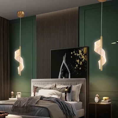 Moderne Wellenförmige Metall/Acryl Pendelleuchte, Chrom/Gold