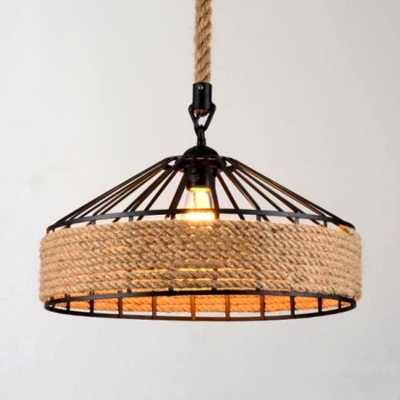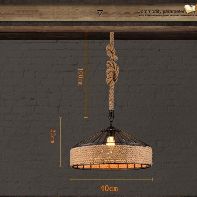 Retro Hanfseil Kronleuchter auf Eisenbasis Kreative industrielle Pendelleuchte