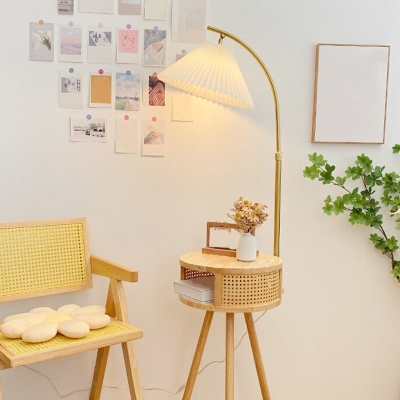 Ozawa Plissierte Stehleuchte mit Nachttisch, Metall & Holz, 2 Farben, 3 Stile