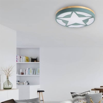 Quinn Moderne Runde Stern Acryl/Holz Deckenleuchte, Weiß/Grün/Grau