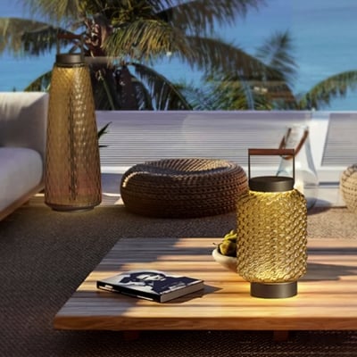 Ritta Außenstehleuchte zeitgenössisch, Solar, Metall & Rattan, 35/60/100 CM