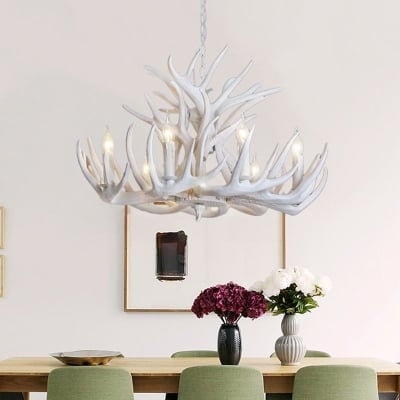 Silva Rustikale Geweih Metall/Harz Kronleuchter Weiß Esszimmer