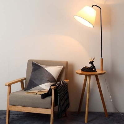 Nordlux Holz Teetisch Textil Stehleuchte, Weiß/Schwarz/Walnuss