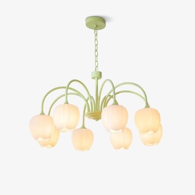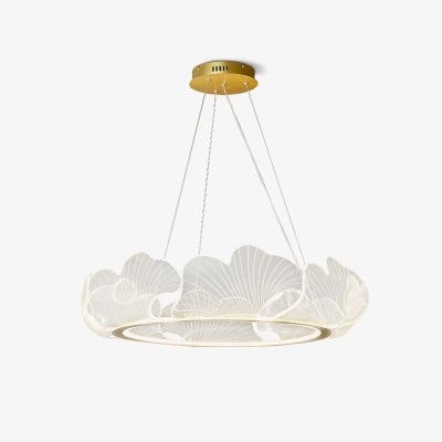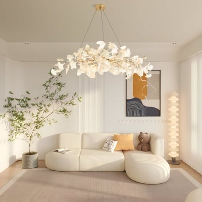 Lottie Wihte Art Deco Chandelier Light Fixture, Ceramic Leaf & Metal