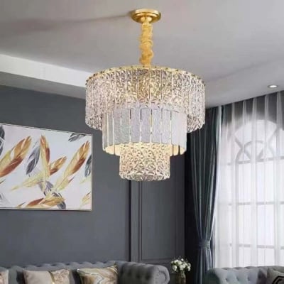Kristy Art Deco Chandelier, Metal & Crystal, 1/2/3 Ring