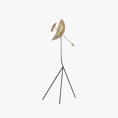 Salgado Floor Lamp Tripod Reflection Postmodern, Metal, Gold, Living Room