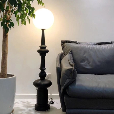 Salgado Retro Column Glass/Resin Floor Lamp, Black, Bedroom