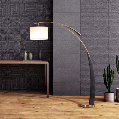 Salgado Modern Arc Fabric/Metal Floor Lamp, Bedroom/Living Room