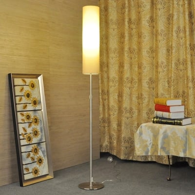Eryn Minimalist Metal and Fabric Cylindrical White Floor Lamp