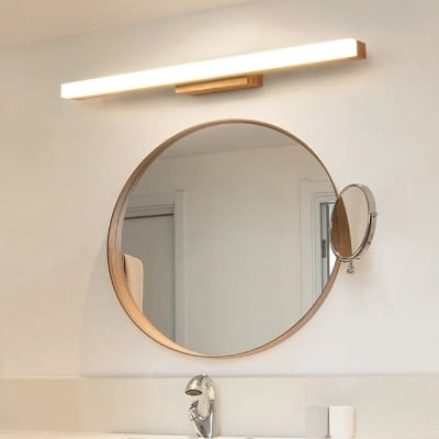 Ozawa Wooden Ball Mirror Front Vanity Wall Lamp, Log Color