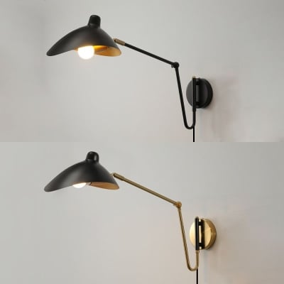 Brady Industrial Swing Arm Vanity Wall Lamp, Black/Gold