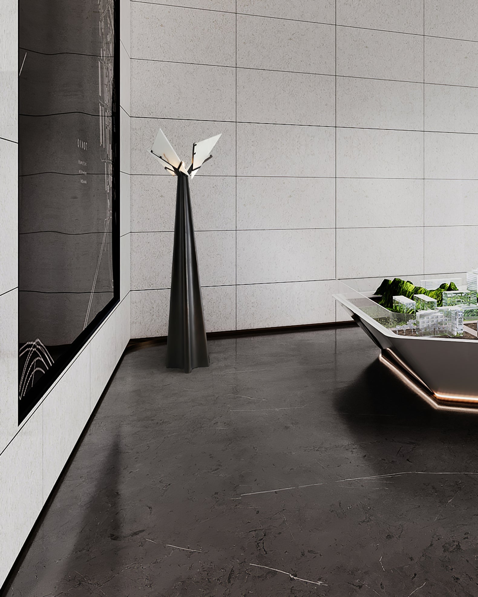 Illuminate your space with the Abstract Black and Alabaster Floor Light. This unique lamp features a striking geometric design with alabaster panels and a sleek black base, adding a touch of modern sophistication to any room. Perfect for living rooms, offices, or lounges, it provides warm ambient lighting while serving as an eye-catching art piece.