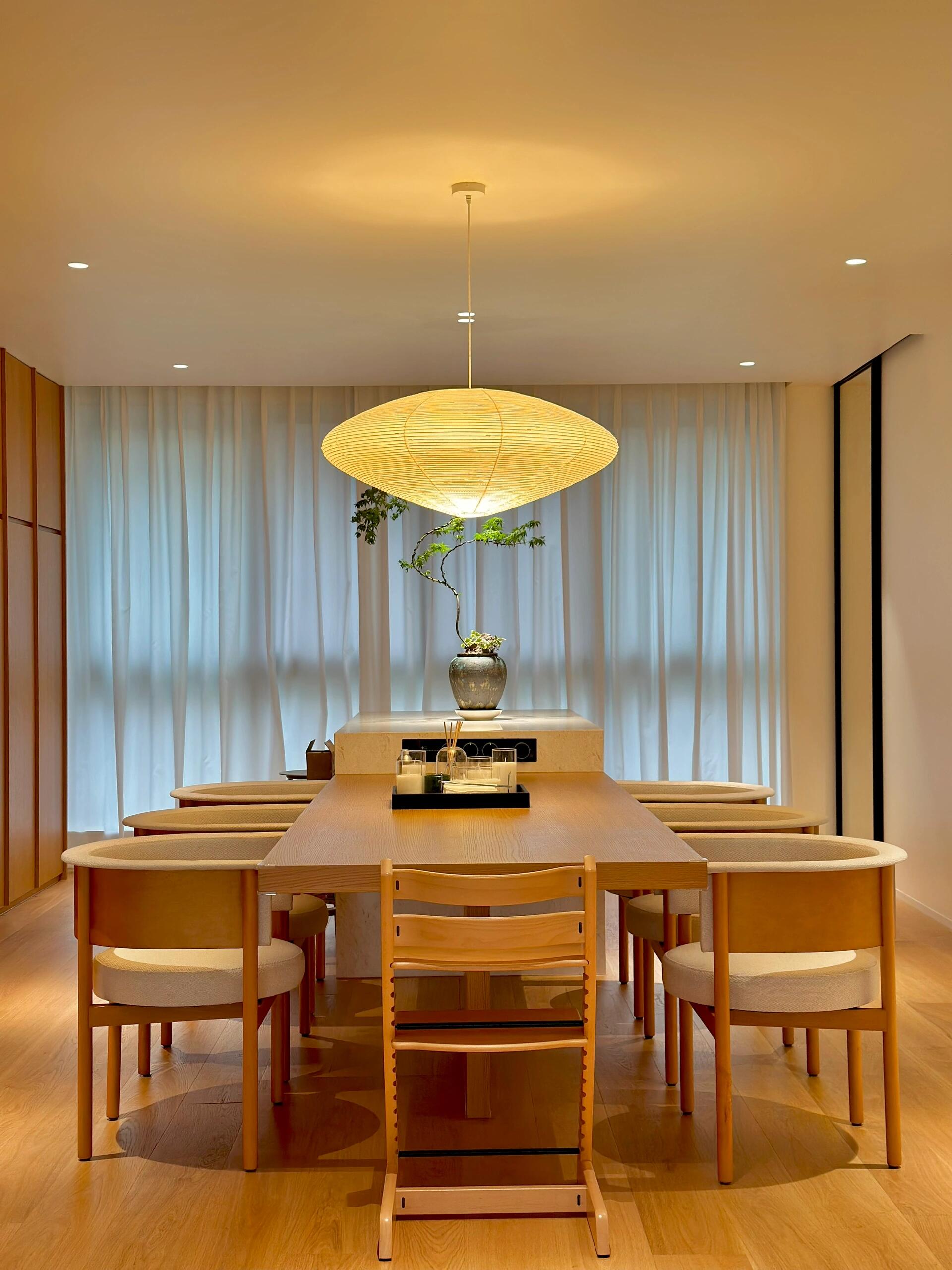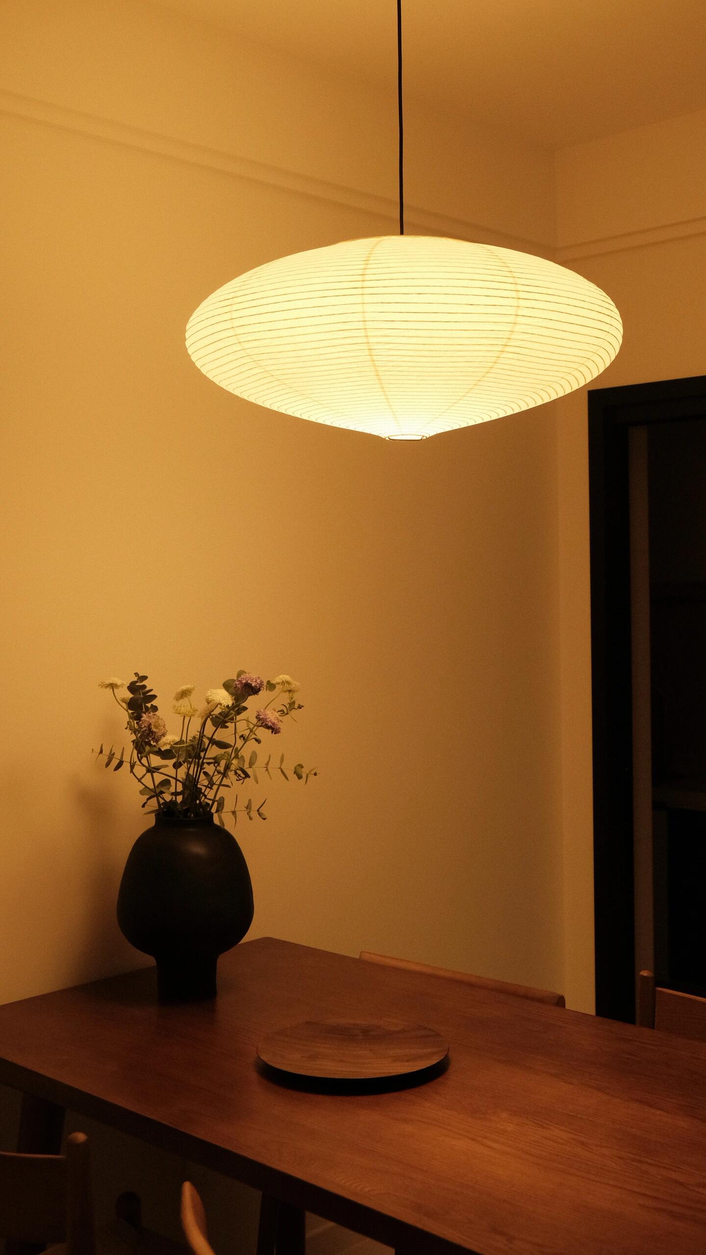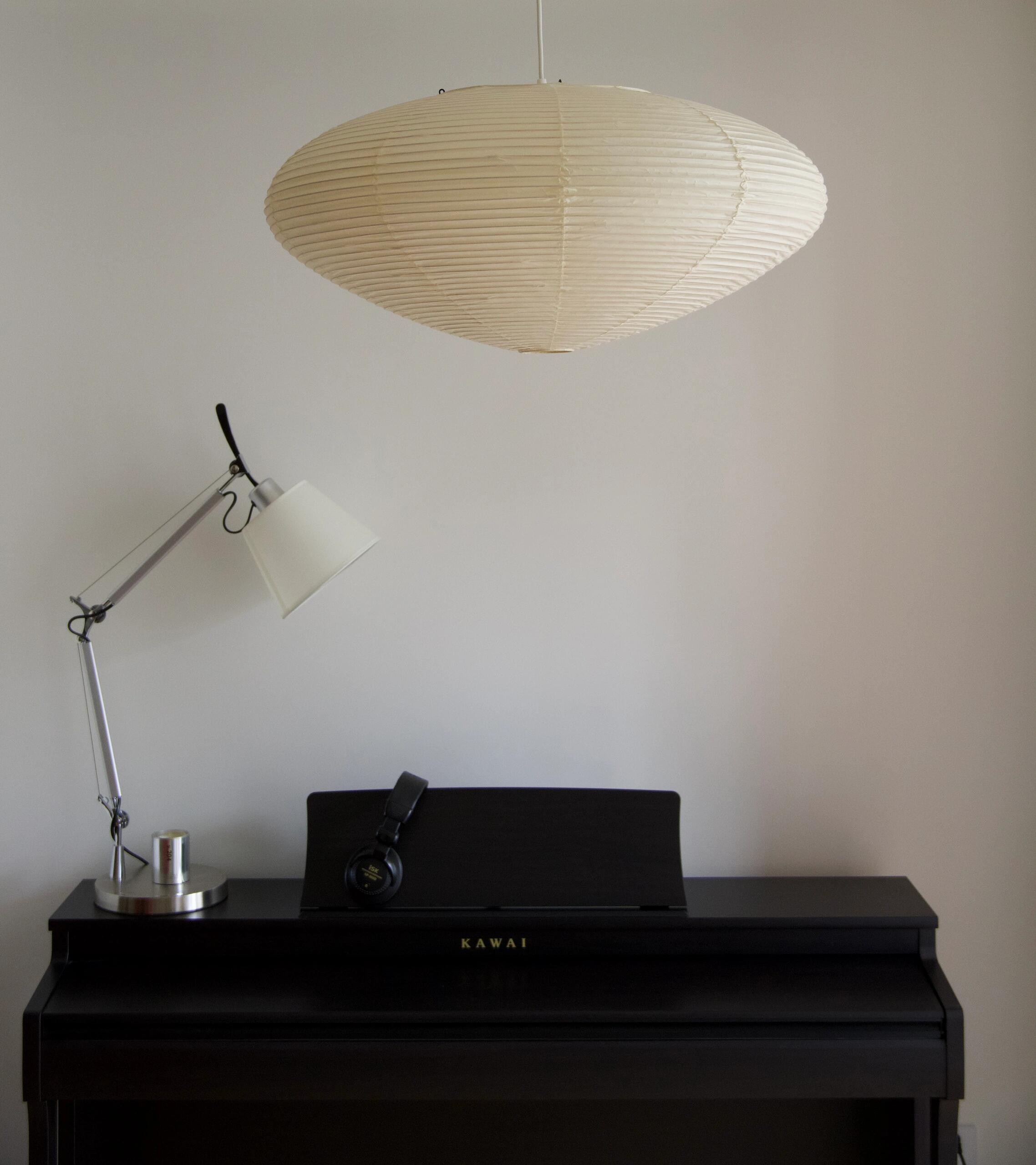 The Akari lights are handcrafted from bamboo ribbing and translucent washi paper made from the inner bark of the mulberry tree. The designer has likened the light of Akari to sunlight filtered through traditional shōji paper doors – these light sculptures create a warm glow and a pleasant ambiance. According to the designer, "All that you require to start a home are a room, a tatami, and Akari.”