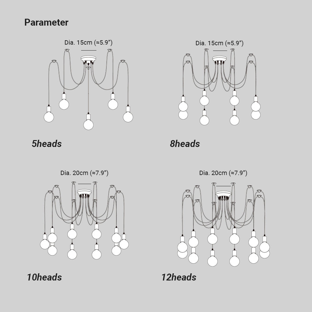 Alessio Retro Country LED Spider Chandelier, Black/White