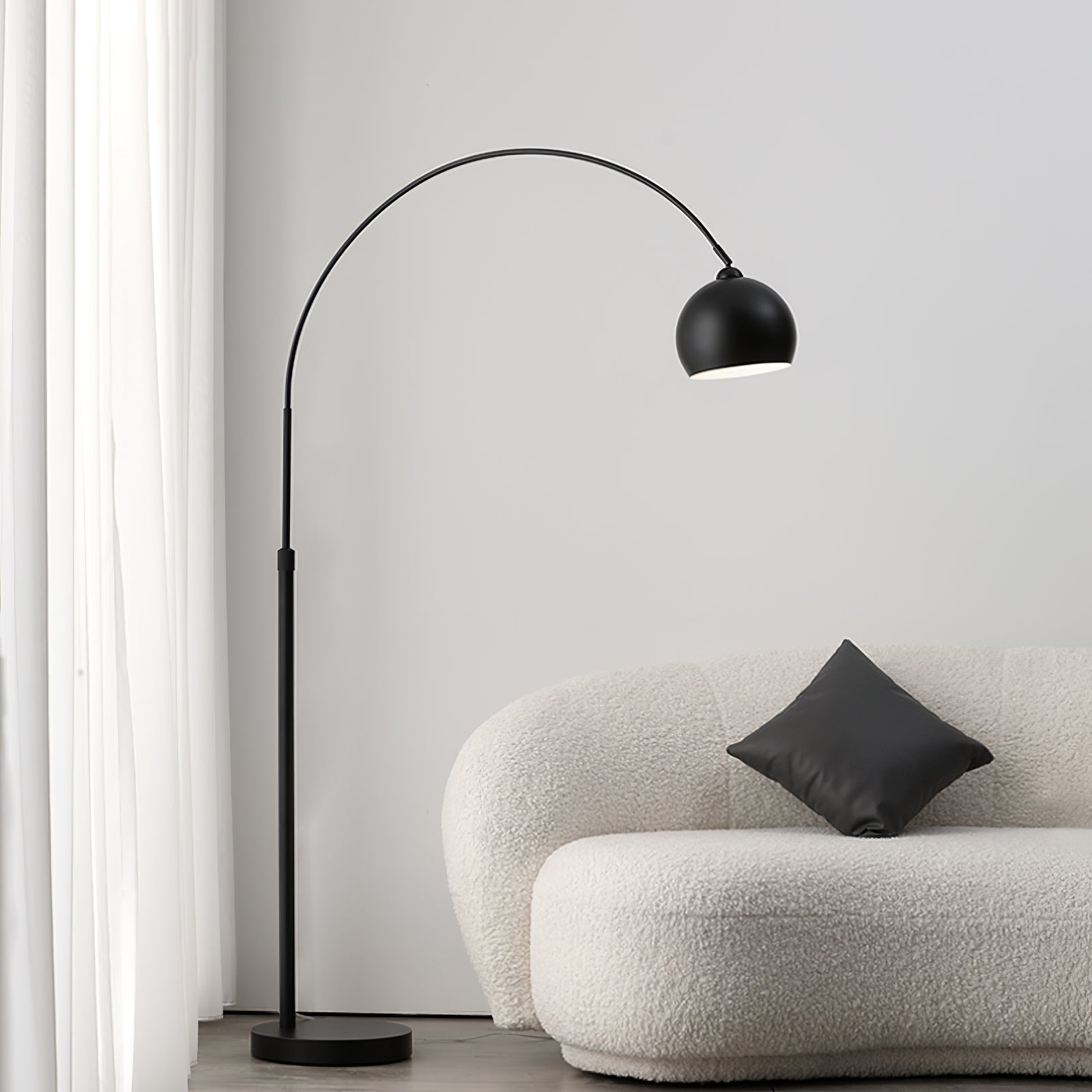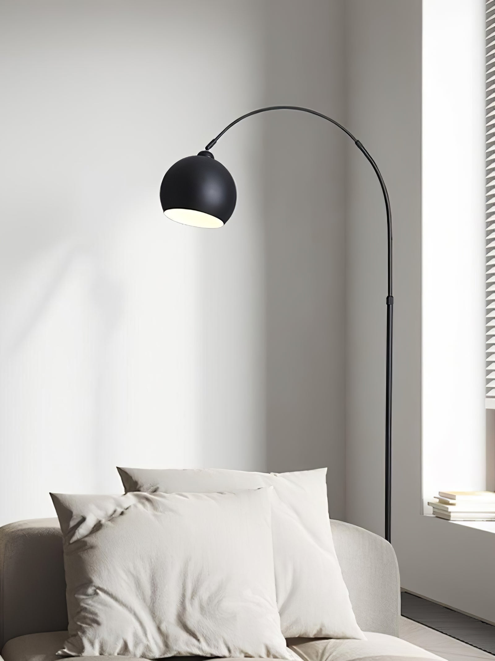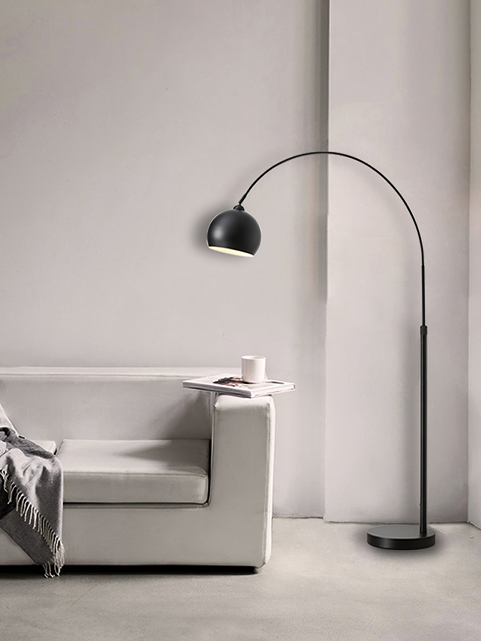 The Angler Slimline LED Pole Floor Lamp is a modern and stylish lighting solution that embodies minimalist elegance. It features a sleek, arched pole that gracefully curves over furniture, making it ideal for creating overhead lighting without the necessity of ceiling fixtures. The lamp is supported by a round, stable base, while the slender black metal body adds a contemporary flair. At the apex of the arch, a rounded, matte black lampshade directs light downward, offering focused illumination perfect for reading or highlighting a specific area. This floor lamp is versatile enough to complement various interior styles, from modern to industrial, and serves as an excellent choice for living rooms, lounges, or study areas where functional yet aesthetically pleasing lighting is desired.