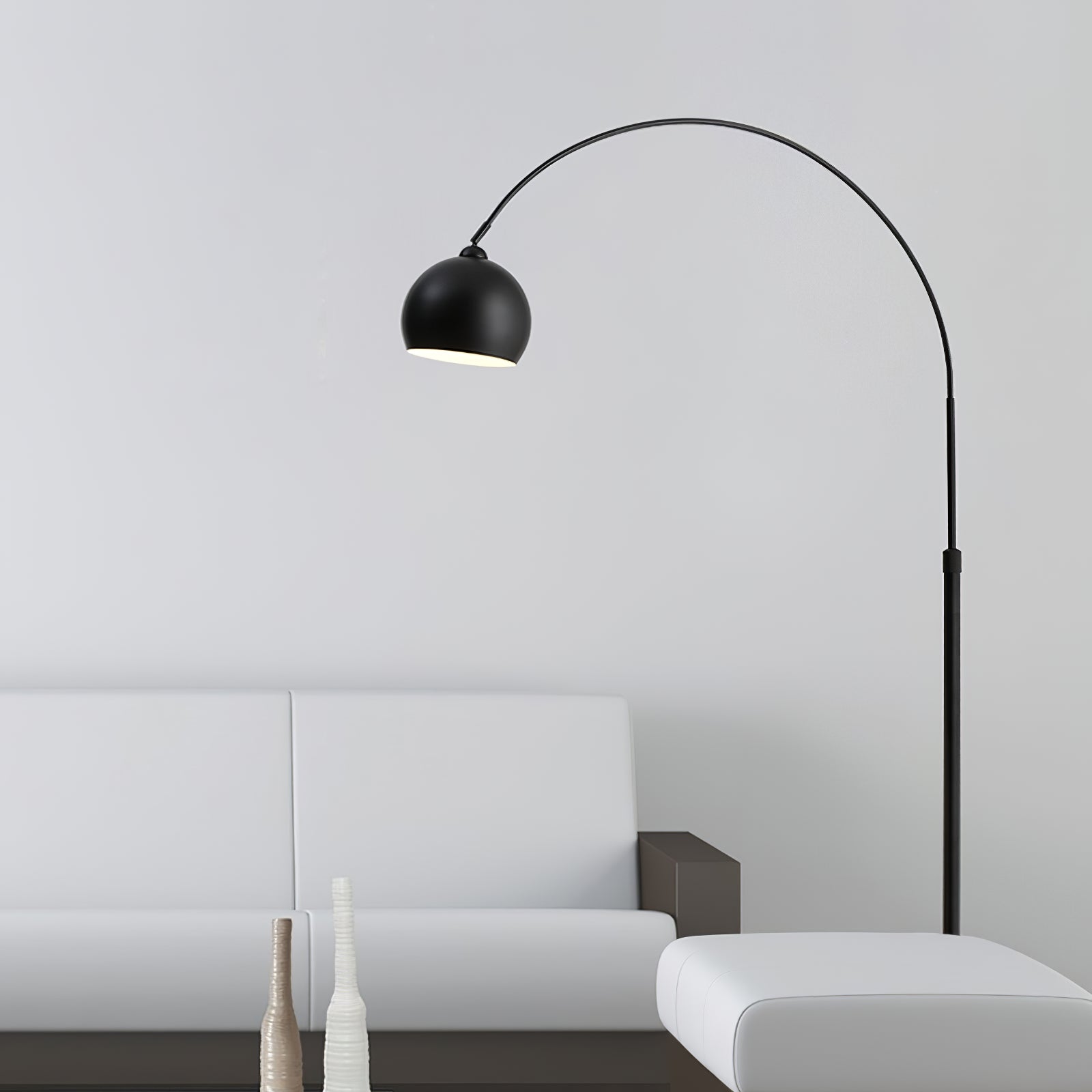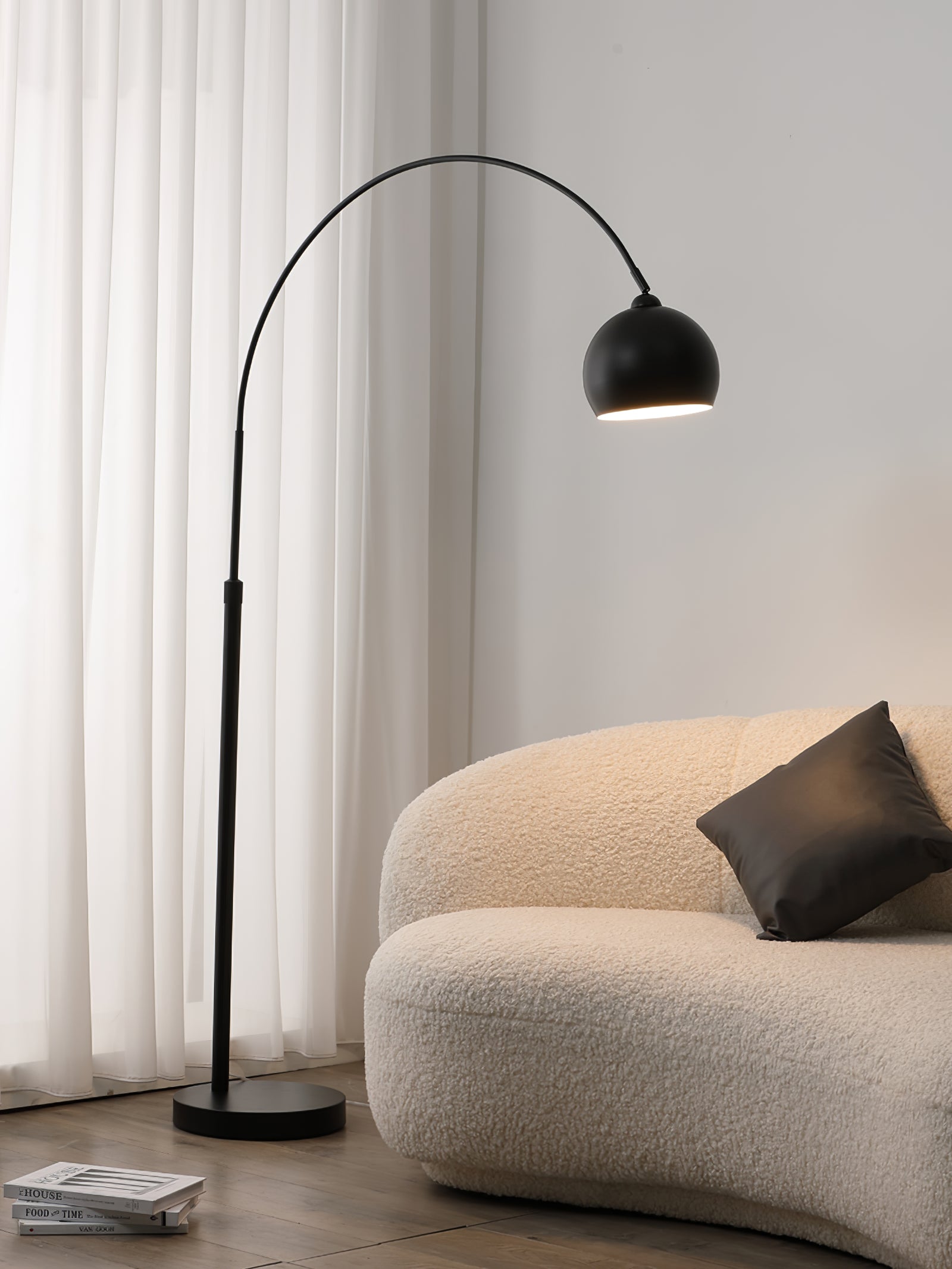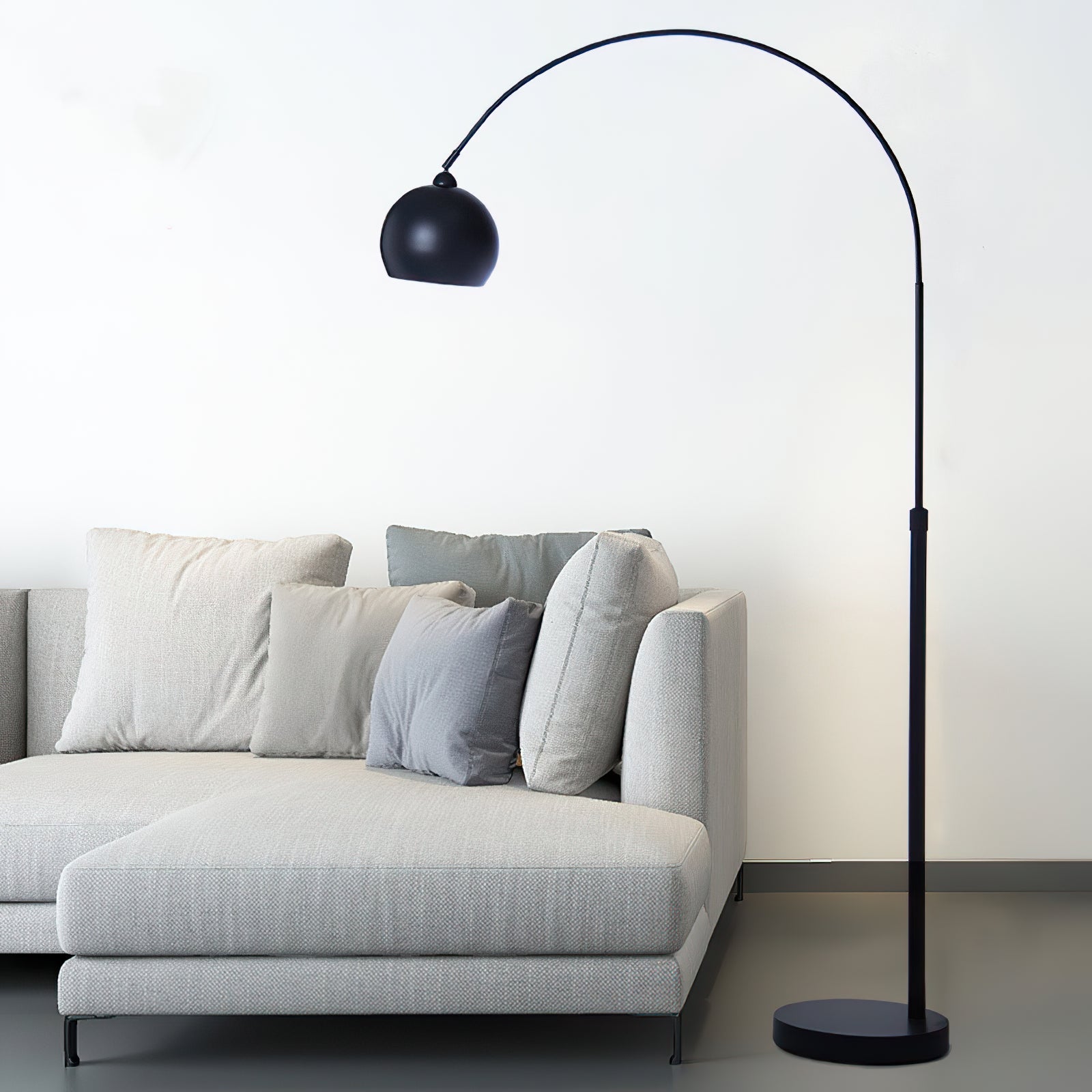 The Angler Slimline LED Pole Floor Lamp is a modern and stylish lighting solution that embodies minimalist elegance. It features a sleek, arched pole that gracefully curves over furniture, making it ideal for creating overhead lighting without the necessity of ceiling fixtures. The lamp is supported by a round, stable base, while the slender black metal body adds a contemporary flair. At the apex of the arch, a rounded, matte black lampshade directs light downward, offering focused illumination perfect for reading or highlighting a specific area. This floor lamp is versatile enough to complement various interior styles, from modern to industrial, and serves as an excellent choice for living rooms, lounges, or study areas where functional yet aesthetically pleasing lighting is desired.