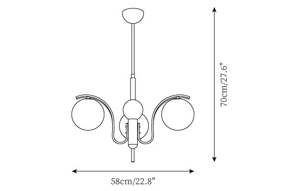 3 Heads Size: ∅ 22.8″ x H 27.6″ / Dia 58cm x H 70cm