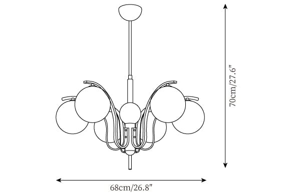 6 Heads Size: ∅ 22.8″ x H 27.6″ / Dia 68cm x H 70cm