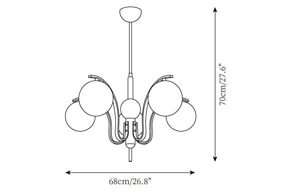 5 Heads Size: ∅ 26.8″ x H 27.6″ / Dia 68cm x H 70cm