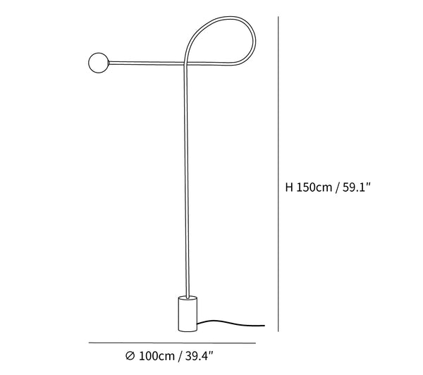 The Arcane Orb Floor Lamp is a sculptural piece that unites the industrial edge of metal with the soft clarity of glass in a form that's both functional and artistic. Standing on a sturdy cylindrical base, the lamp's slender metal body arcs gracefully, culminating in a simple yet elegant glass sphere that appears to float effortlessly in space.