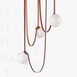 This iconic profile for suspended installation features a refined leather surface developed specifically. Belt is pure flexibility, a sinuous line that creates a balance between the softness of leather and the rigidity of aluminum. The soft part is represented by the connection to the electrical network, while the rigid parts correspond to the light source, the long lines of light.