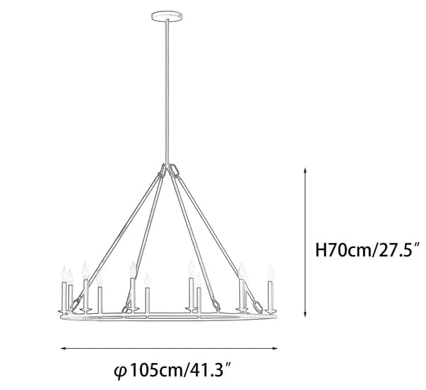 The Black Round Farmhouse Candle Chandelier is a timeless lighting fixture that harmoniously combines rustic charm with modern minimalism. Featuring a circular iron frame adorned with a sleek black finish, this chandelier accommodates multiple candle-style lights, fostering a warm and inviting atmosphere. Its robust design is enhanced by the clean, symmetrical arrangement of the lights, which are gracefully suspended from metal rods, adding depth and character to any space.