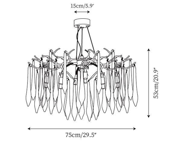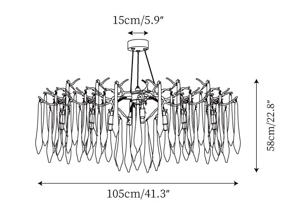 12heads Size: ∅ 41.3″ x H 22.8″ / Dia 105cm x H 58cm