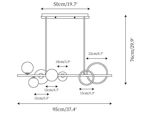 Suspension rod length 50cm/19.7″. The length of the suspension rod can be varied upon request.