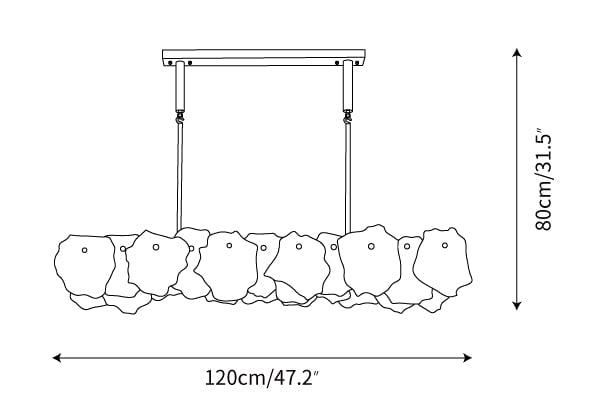 Suspension rod length 50cm/19.7″. The length of the suspension rod can be varied upon request.