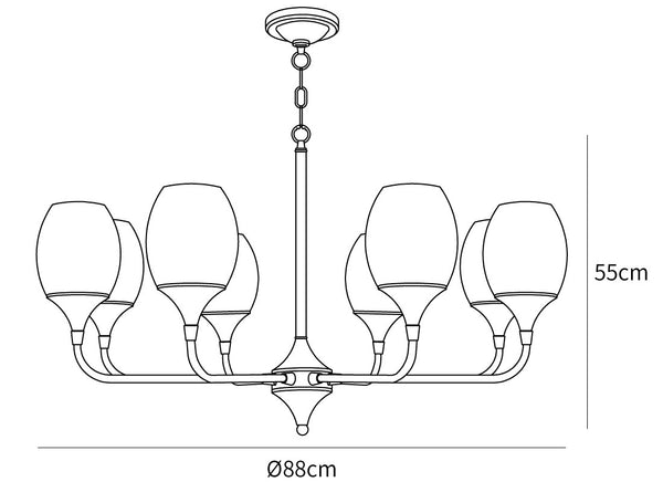 This chandelier recalls the beautiful past with this charming, and just ever so slightly drama inducing, candle-style chandelier. With eight undulating arms that proudly hold up the bright lights, it is as if you are transported into a world of constant debutante balls and society gatherings--even if you really are just hosting a friendly dinner or reading your favorite novel after work. You can enjoy the recollections of the past while still enjoying the simple luxuries of your modern-day home.