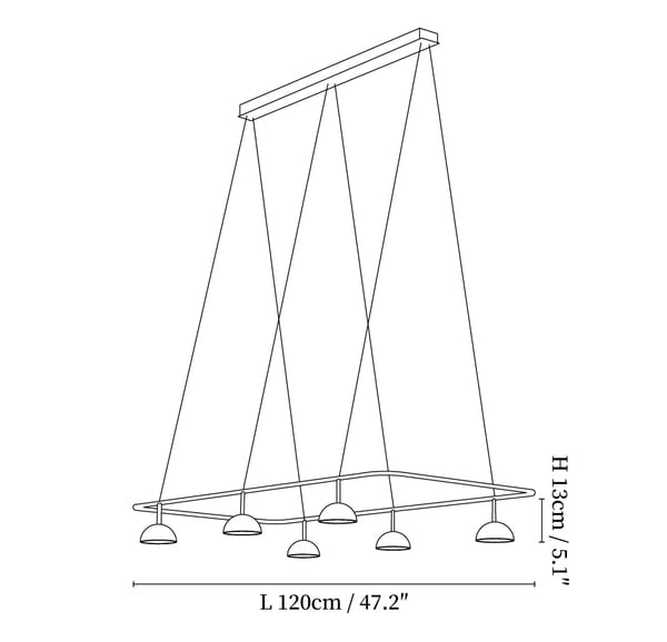 59″ Adjustable hanging height cable. Can be extended upon request.