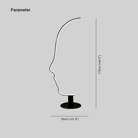 Edge Human Face Profile Modern Arc Floor Lamp, Black, Metal/Silicon