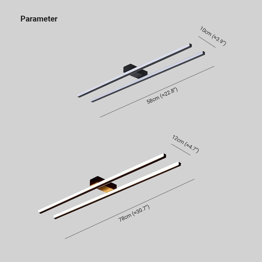 - The simple design represents modern elegance at its best. This Flush Mount ceiling light combines style and practicality with two parallel lines and a smooth rectangular suction cup. This thing looks modern and fits well in any room because it's simple and adds a nice touch to the room. The small LED lights placed behind the lines create a magic-like effect of light and darkness, making your space look more interesting and three-dimensional.