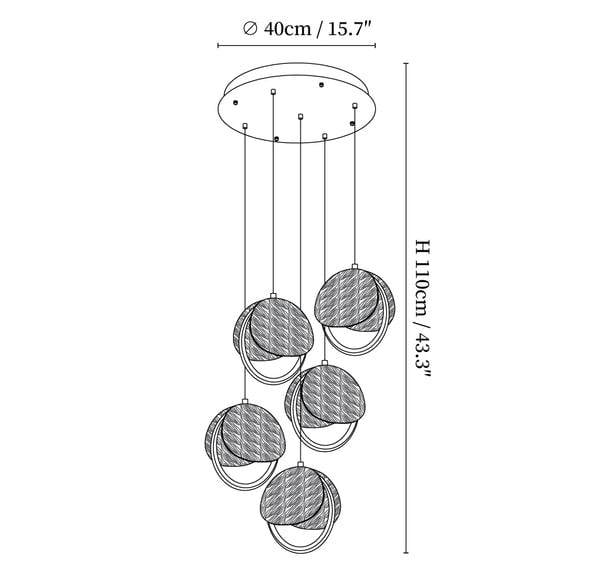 5 Heads: Dia 40cm x H 110cm / ∅ 15.7" x H 43.3"