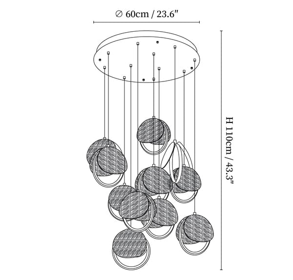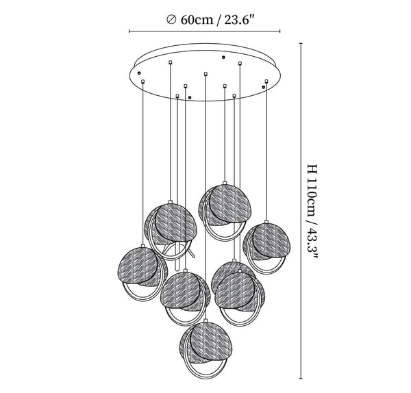 9 Heads: Dia 60cm x H 110cm / ∅ 23.6" x H 43.3"