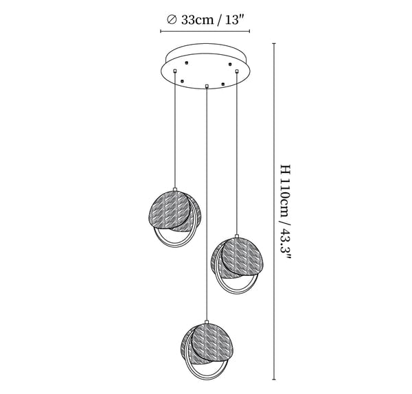 3 Heads: Dia 33cm x H 110cm / ∅ 13" x H 43.3"