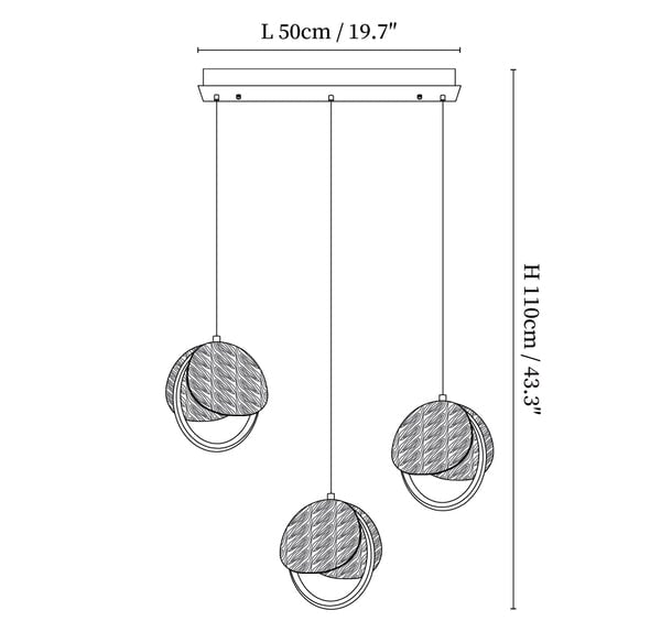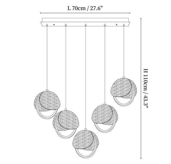 59″ Adjustable hanging height cable, which can be lengthened as required.