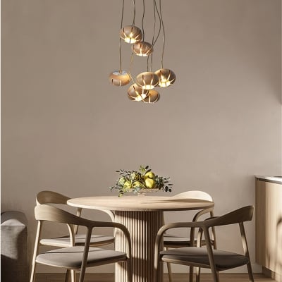 The Bubble Ball Chandelier consists of a cluster of smooth, rounded wooden and glowing acrylic spheres that appear like bubbles suspended in mid-air. This arrangement creates a dynamic and airy composition that gives a sense of lightness and movement. Perfect for modern and artistic interiors, the Bubble Ball Chandelier brings a joyful and contemporary vibe, transforming your ceiling into a fascinating display of lights and shapes.