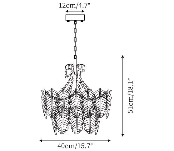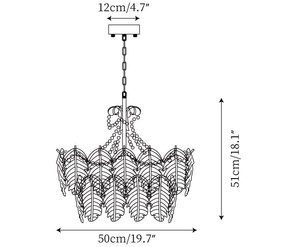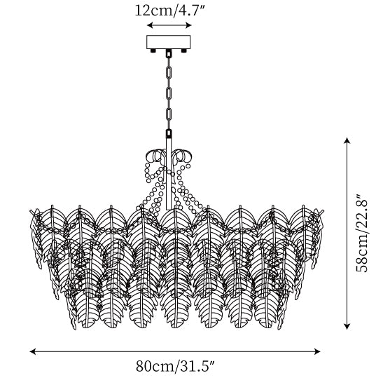 Size: Dia 80cm x H 58cm / ∅ 31.5″ x H 22.8″ ( uses twelve E14 bulbs )