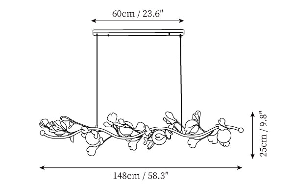 6 heads Size: L 148cm x H 25cm / L 58.3″ x H 9.8″