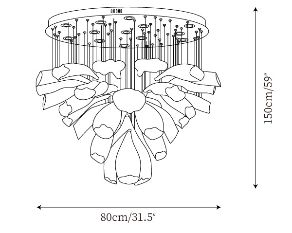 Introducing the Glass Lotus Chandelier — a stunning lighting fixture that combines classic beauty with modern elegance. Its glass encasing, full of intricate detailing, creates a glittering and captivating atmosphere in any space. Let the Glass Lotus Chandelier light up the room and bring a touch of nature indoors.
