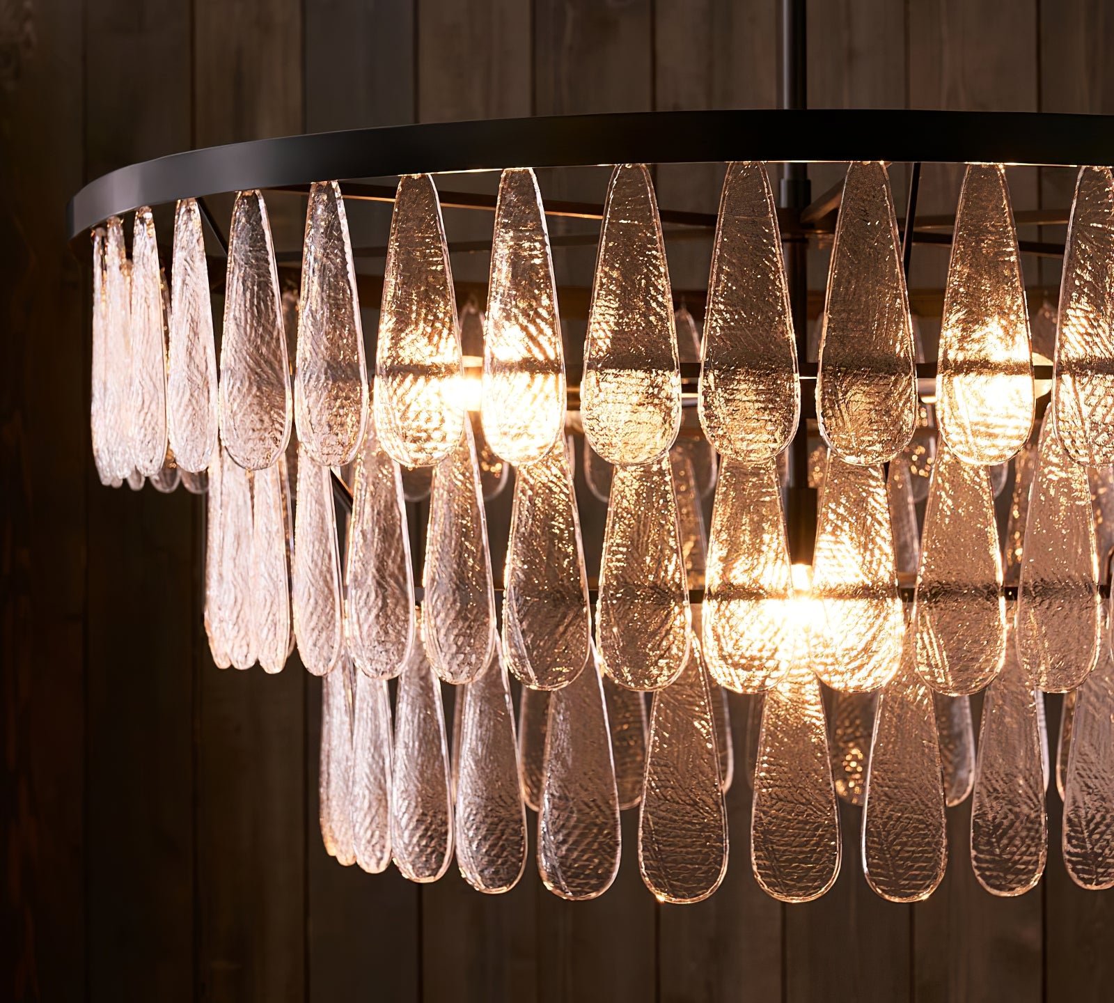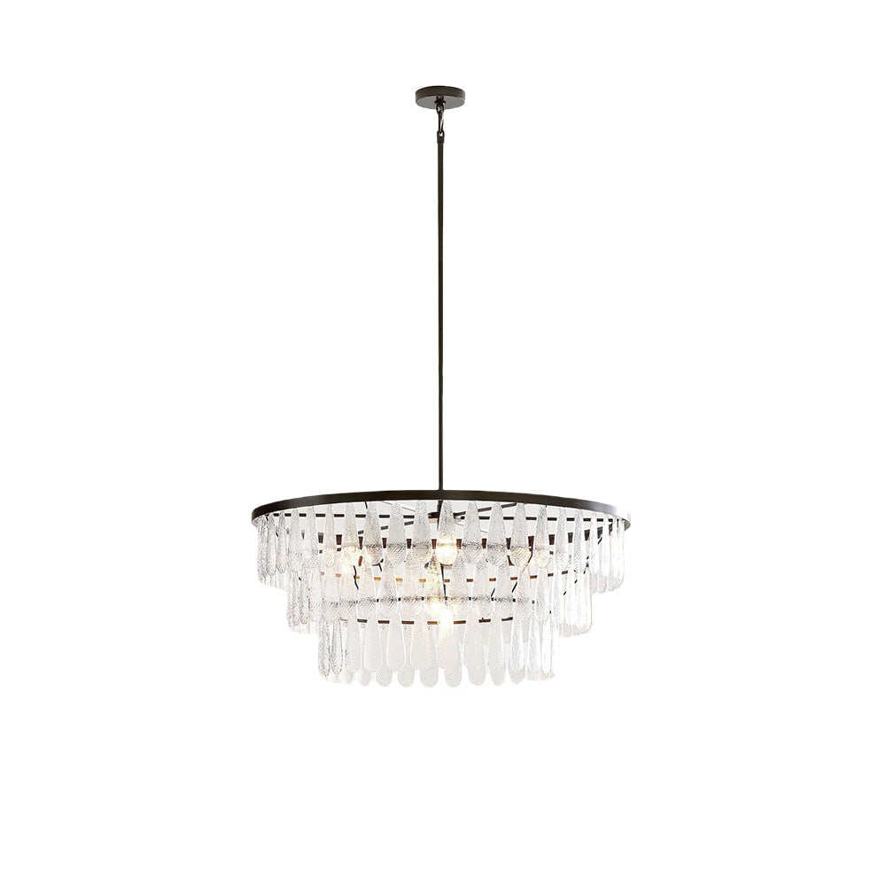 Gold Circular Textured Glass Chandelier
