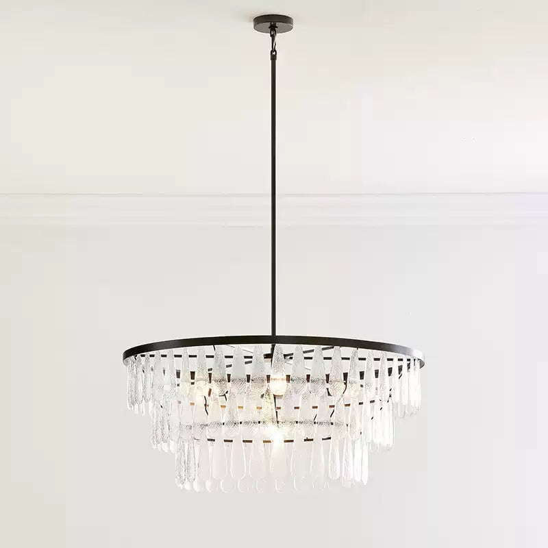 The Gold Circular Textured Glass Chandelier is an elegant fusion of modern design and timeless glamour. Featuring a sleek circular gold-finished frame, this chandelier is adorned with layers of textured glass drops that refract light beautifully, creating a dazzling and inviting ambiance. The handcrafted glass elements add a unique touch of sophistication, reflecting both natural and artificial light with brilliance.
