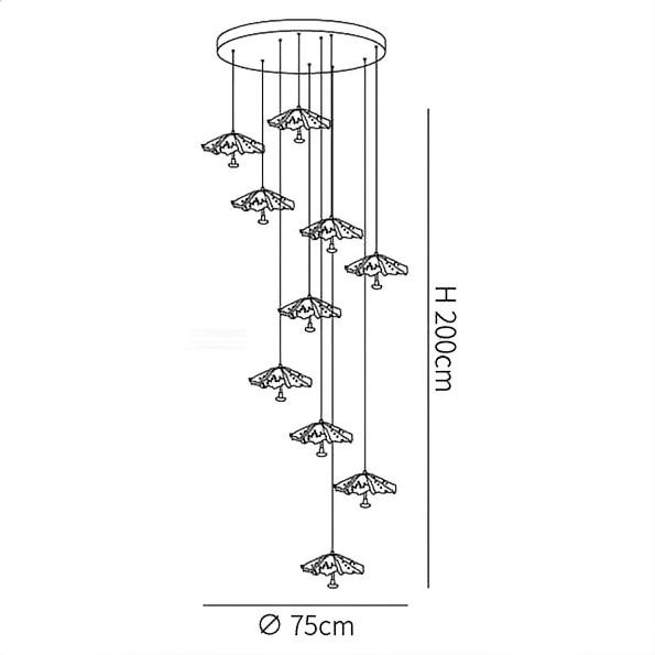 10 heads Size: Dia 75cm x H 200cm / ∅ 29.5″ x H 78.7″