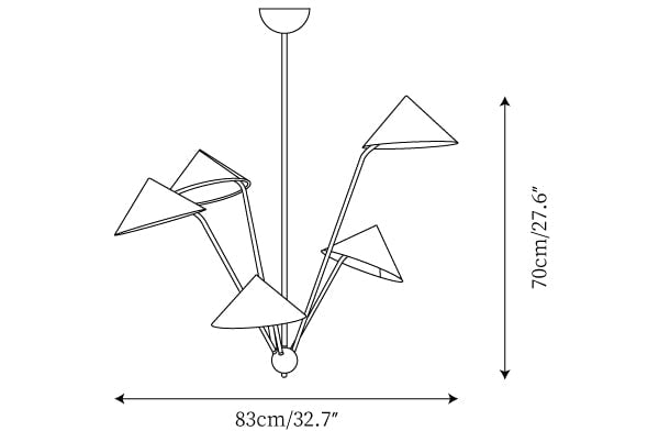 Size: L 83cm x H 70cm / L 32.7″ x H 27.6″( uses five E27 bulbs )