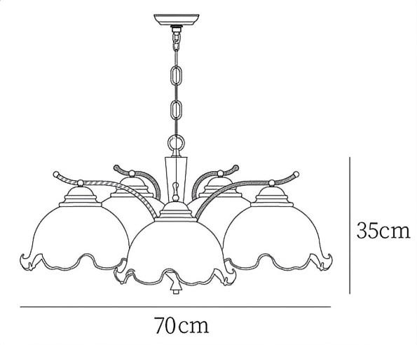 A modern update on the classic chandelier, this is an eye-catching lighting centerpiece sure to raise admiration. The chandelier features a striking flower lampshade. lamp body curving out downwards, this chandelier is a stylish choice for a living room or living space.
