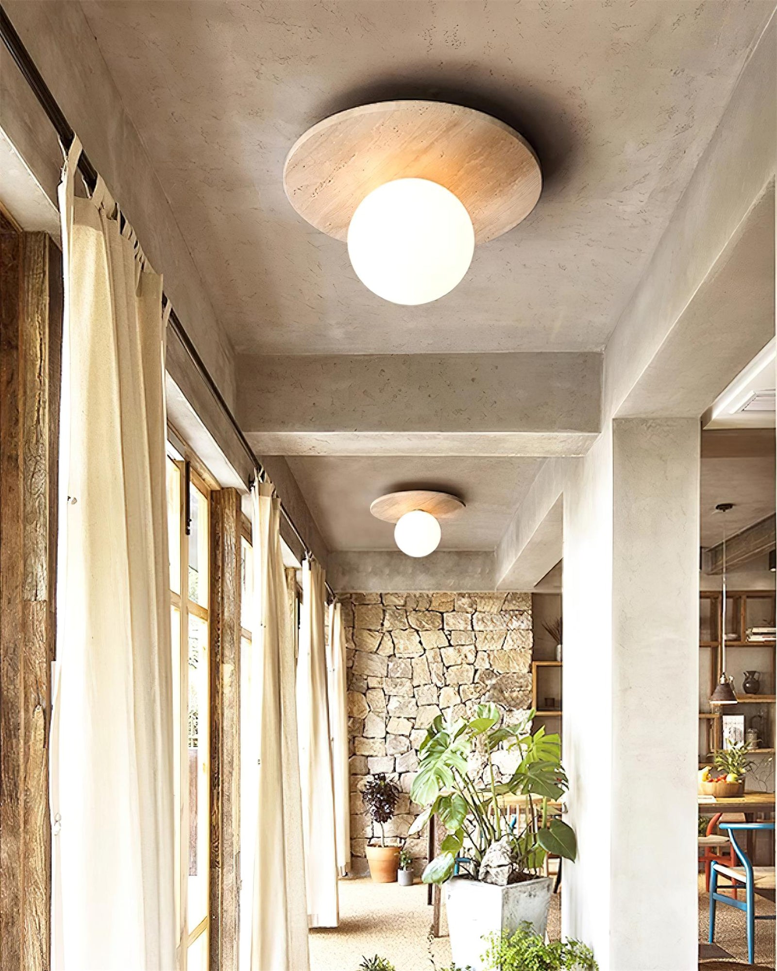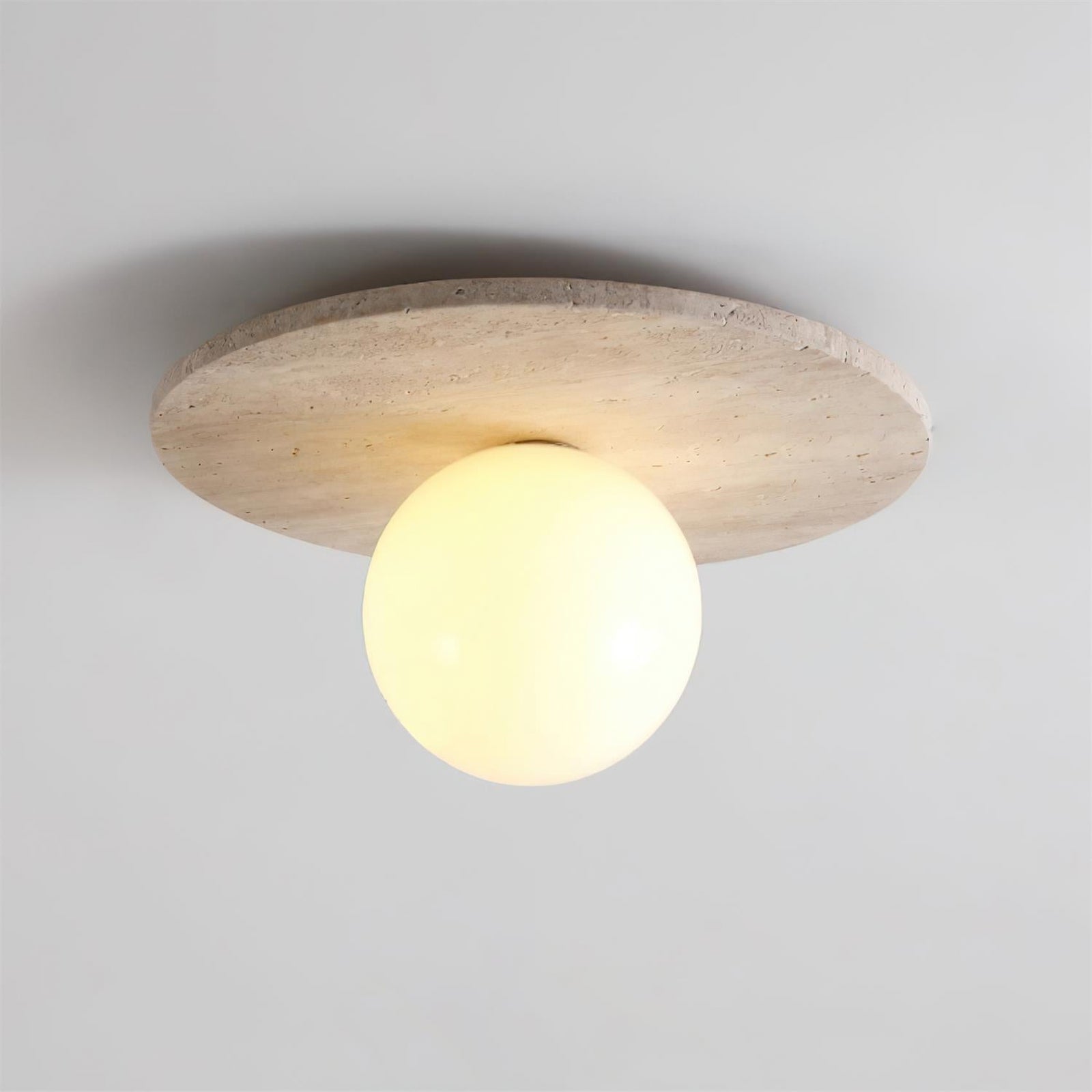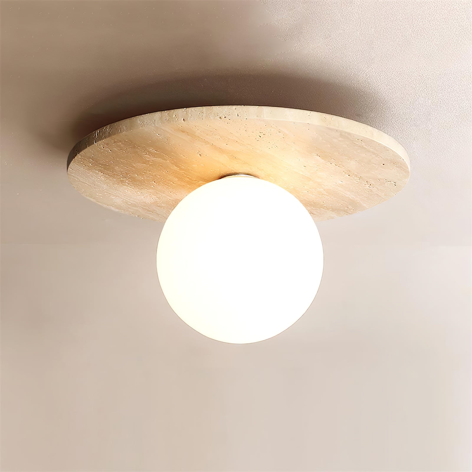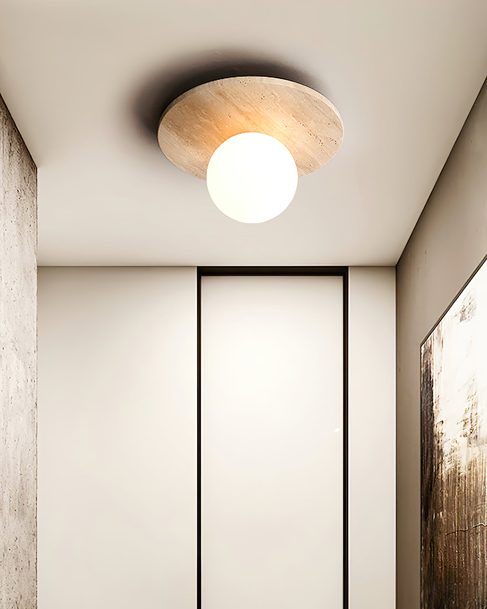 The Minimalist Stone Disc Ceiling Light combines natural elegance with a sleek, modern design. Featuring a smooth travertine stone disc and a soft, glowing globe, this ceiling fixture brings an organic touch to contemporary interiors. The raw texture of the stone contrasts beautifully with the gentle luminescence of the globe, creating a balanced and understated aesthetic. Perfect for kitchens, hallways, or living rooms, this versatile light fixture enhances any space with its clean lines and earthy appeal, offering a subtle sophistication that complements both compact apartments and spacious homes.