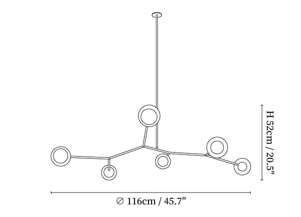 6 Heads Size: Dia 116cm x H 52cm / ∅ 45.7″ x H 20.5″