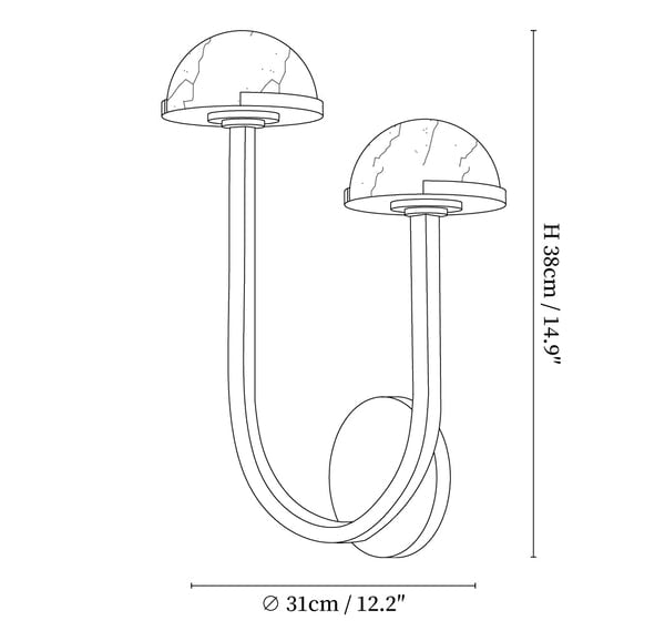 The Mushroom Alabaster Wall Lamp is inspired by the organic beauty of mushrooms, paired with the timeless elegance of alabaster stone. The curved metal arms cradle the soft, glowing alabaster shades, reminiscent of mushrooms illuminated in a serene forest. This lamp combines natural elements with refined design, creating a warm and inviting ambiance perfect for any room in need of a touch of nature-inspired sophistication.