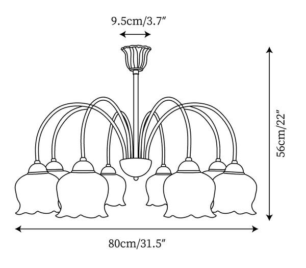 8 Heads Size: Dia 80cm x H 58cm / ∅ 31.4″ x H 22.8″